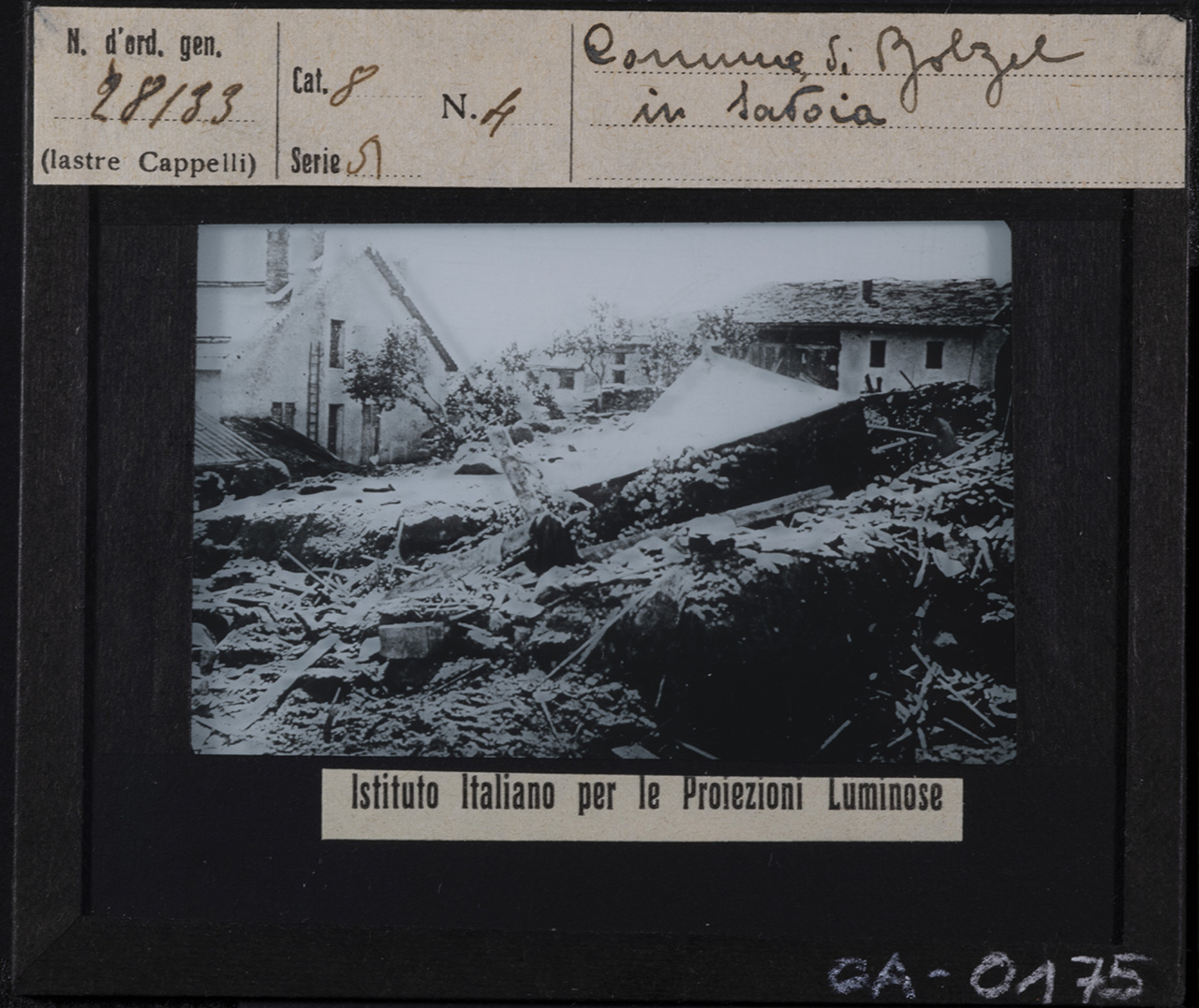 - NOTIZIE STORICO CRITICHE I materiali presenti nel fondo lasciano supporre una riproduzione da positivi o da libri, come spesso si deduce da mascherature che vanno a ricoprire titolazioni originali o dalla presenza di puntine da disegno usate per fissare ad un supporto la fotografia da duplicare. Le diapositive fotografiche su vetro per lanterna magica sono realizzate tra il 1921 e il 1932 a Milano, con riprese eseguite dall’Istituto Italiano per le Proiezioni Luminose (1921-1935 ca.) e lastre prodotte dalla ditta Cappelli (1885-1932), industria di grande rilievo che si impone sul mercato italiano, soprattutto dopo l’avvento della gelatina bromuro d’argento che semplifica il processo di sviluppo e stampa dei negativi e rende possibile una svolta verso l’industrializzazione in campo fotografico. Le speciali proiezioni delle immagini, effettuate con proiettori al carburo (acetilene), illustrano le lezioni di agricoltura e zootecnica che si tengono in modo itinerante in varie località dell’area bolognese. Tali lezioni sono promosse a livello nazionale dalle Cattedre Ambulanti di Agricoltura, una Istituzione nata nella seconda metà dell’Ottocento, quando le università del Paese riescono a formare i primi agronomi e quando si consolidano gli istituti agrari: sono gli uomini formatisi nelle scuole agrarie a guidare le prime cattedre, la loro determinazione porta allo sviluppo dell’agricoltura italiana, il loro scopo iniziale è quello di tenere delle conferenze di “propaganda agricola”, che consentano di diffondere nuove tecniche e raggiungere gli agricoltori anche nelle campagne più sperdute. L’insegnamento delle buone pratiche agricole serve a combattere l’ignoranza e l’isolamento della società rurale, i risultati sono subito tangibili: incremento della produzione agricola e del patrimonio zootecnico, introduzione e diffusione di nuove piante e varietà. La Cattedra Ambulante di Agricoltura di Bologna (in seguito Ufficio provinciale per l’Agricoltura) è attiva dal 1893 al 1935, ne sono presidenti Domizio Cavazza e poi Luigi Zerbini, nella sua genesi ha un ruolo primario il Comizio agrario di Bologna (inaugurato nel 1867, nel 1915 si separa dalla Cattedra) presieduto da Luigi Pizzardi e poi da Enrico Pini. Organi ufficiali del Comizio agrario di Bologna e della Cattedra Ambulante di Agricoltura di Bologna sono i periodici “L’Italia agricola” (1869-1991), “L’agricoltura bolognese” (1907-1929) e gli “Annali della cattedra provinciale di agricoltura e dell’ufficio tecnico del Comizio agrario di Bologna” (1893-1912). Con la legge n. 1220 del 13 giugno 1935 la Cattedra Ambulante di Agricoltura di Bologna viene soppressa e sostituita dall’Ispettorato provinciale di Agricoltura