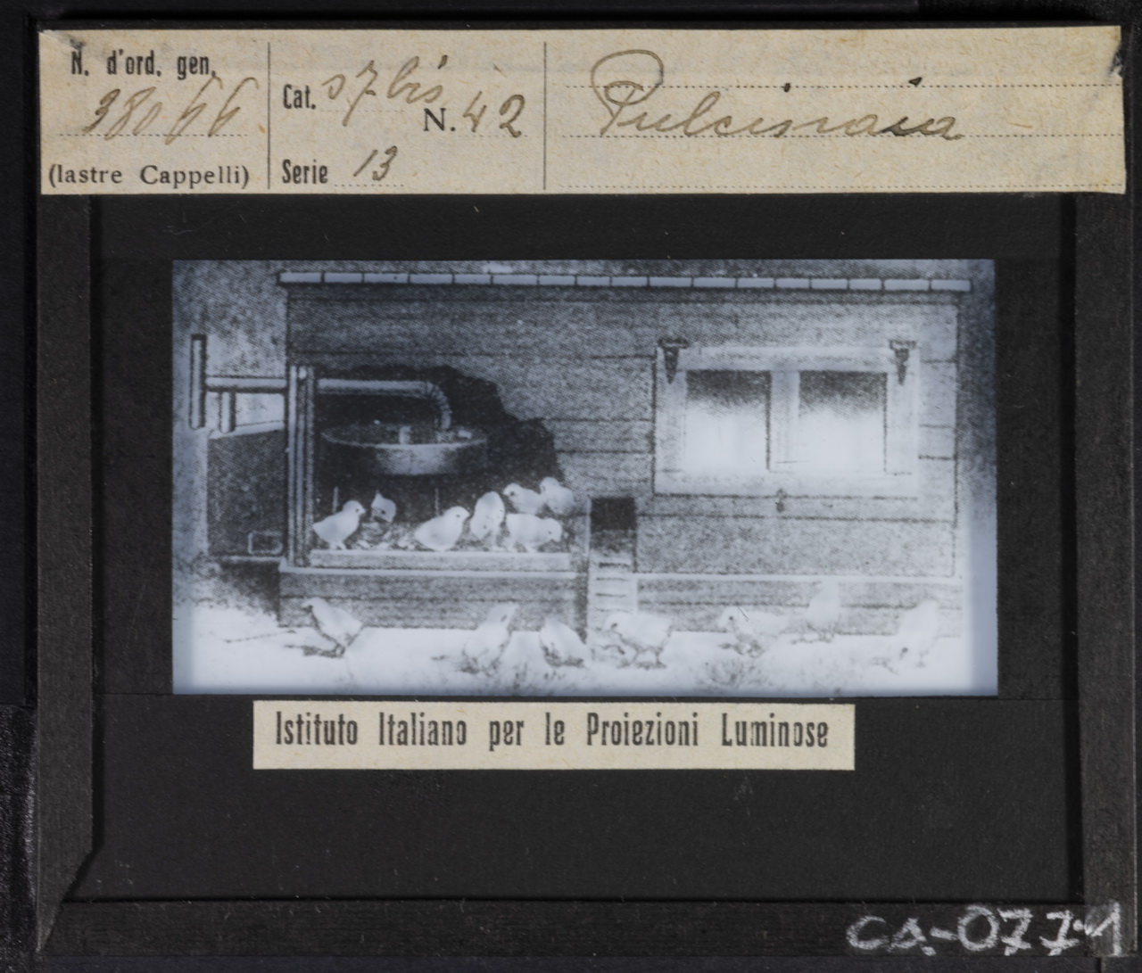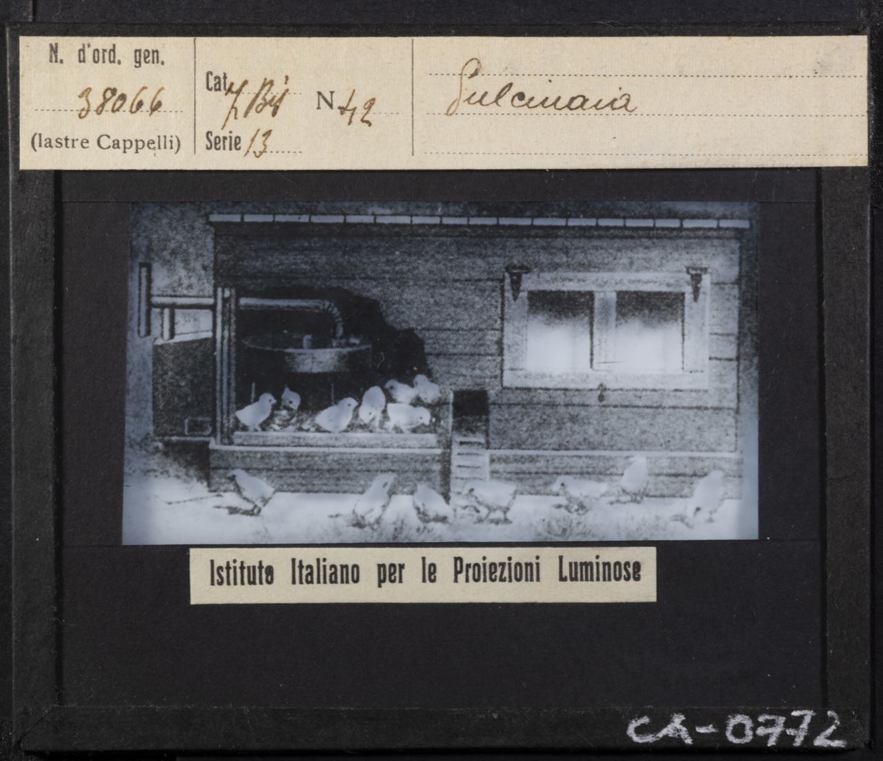 - NOTIZIE STORICO CRITICHE I materiali presenti nel fondo lasciano supporre una riproduzione da positivi o da libri, come spesso si deduce da mascherature che vanno a ricoprire titolazioni originali o dalla presenza di puntine da disegno usate per fissare ad un supporto la fotografia da duplicare. Le diapositive fotografiche su vetro per lanterna magica sono realizzate tra il 1921 e il 1932 a Milano, con riprese eseguite dall’Istituto Italiano per le Proiezioni Luminose (1921-1935 ca.) e lastre prodotte dalla ditta Cappelli (1885-1932), industria di grande rilievo che si impone sul mercato italiano, soprattutto dopo l’avvento della gelatina bromuro d’argento che semplifica il processo di sviluppo e stampa dei negativi e rende possibile una svolta verso l’industrializzazione in campo fotografico. Le speciali proiezioni delle immagini, effettuate con proiettori al carburo (acetilene), illustrano le lezioni di agricoltura e zootecnica che si tengono in modo itinerante in varie località dell’area bolognese. Tali lezioni sono promosse a livello nazionale dalle Cattedre Ambulanti di Agricoltura, una Istituzione nata nella seconda metà dell’Ottocento, quando le università del Paese riescono a formare i primi agronomi e quando si consolidano gli istituti agrari: sono gli uomini formatisi nelle scuole agrarie a guidare le prime cattedre, la loro determinazione porta allo sviluppo dell’agricoltura italiana, il loro scopo iniziale è quello di tenere delle conferenze di “propaganda agricola”, che consentano di diffondere nuove tecniche e raggiungere gli agricoltori anche nelle campagne più sperdute. L’insegnamento delle buone pratiche agricole serve a combattere l’ignoranza e l’isolamento della società rurale, i risultati sono subito tangibili: incremento della produzione agricola e del patrimonio zootecnico, introduzione e diffusione di nuove piante e varietà. La Cattedra Ambulante di Agricoltura di Bologna (in seguito Ufficio provinciale per l’Agricoltura) è attiva dal 1893 al 1935, ne sono presidenti Domizio Cavazza e poi Luigi Zerbini, nella sua genesi ha un ruolo primario il Comizio agrario di Bologna (inaugurato nel 1867, nel 1915 si separa dalla Cattedra) presieduto da Luigi Pizzardi e poi da Enrico Pini. Organi ufficiali del Comizio agrario di Bologna e della Cattedra Ambulante di Agricoltura di Bologna sono i periodici “L’Italia agricola” (1869-1991), “L’agricoltura bolognese” (1907-1929) e gli “Annali della cattedra provinciale di agricoltura e dell’ufficio tecnico del Comizio agrario di Bologna” (1893-1912). Con la legge n. 1220 del 13 giugno 1935 la Cattedra Ambulante di Agricoltura di Bologna viene soppressa e sostituita dall’Ispettorato provinciale di Agricoltura