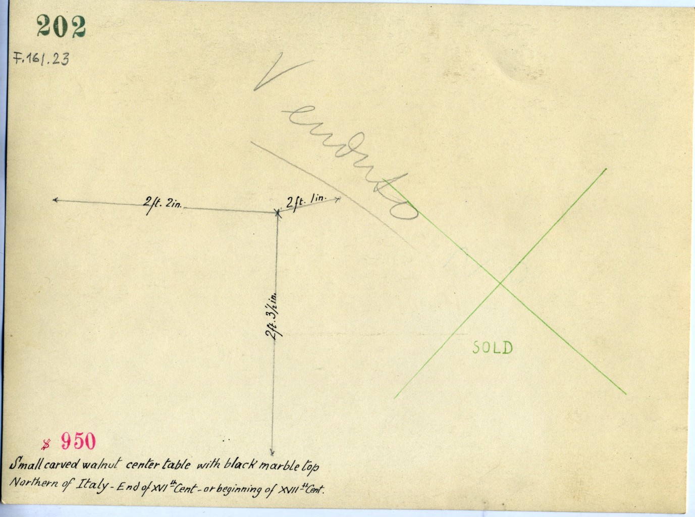 busta di cartoncino ingiallito (cm 27 x 37), fortemente consumata agli angoli e ai bordi. Sulla parte anteriore, scritta a inchiostro nero con l'indirizzo del destinatario "Al Sign/ Ugo Bardini/ Via S. Nicolò/ Firenze" con indicazione "Stampe" in alto e francobollo nell'angolo superiore destro con data appena leggibile (1938?). Sulla parte anteriore e sul verso, resti di disegni a matita riproducenti delle modanature. All'interno, ventiquattro foto di tavoli vari insieme a numerosi ritagli e tavole di pubblicazioni (raccolti ora in un inserto)