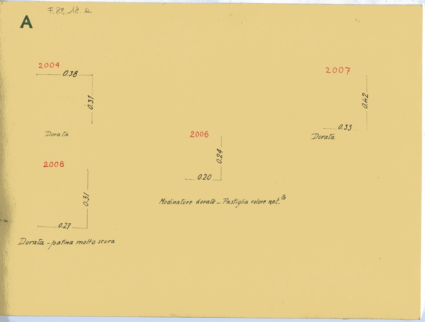 busta telata (cm. 20.5 x 28), ingiallita, consumata ai bordi e in parte lacerata. Sulla parte anteriore, lungo il bordo inferiore, impressa a inchiostro blu la scritta " CORNICI 2". All'interno 28 foto di cornici