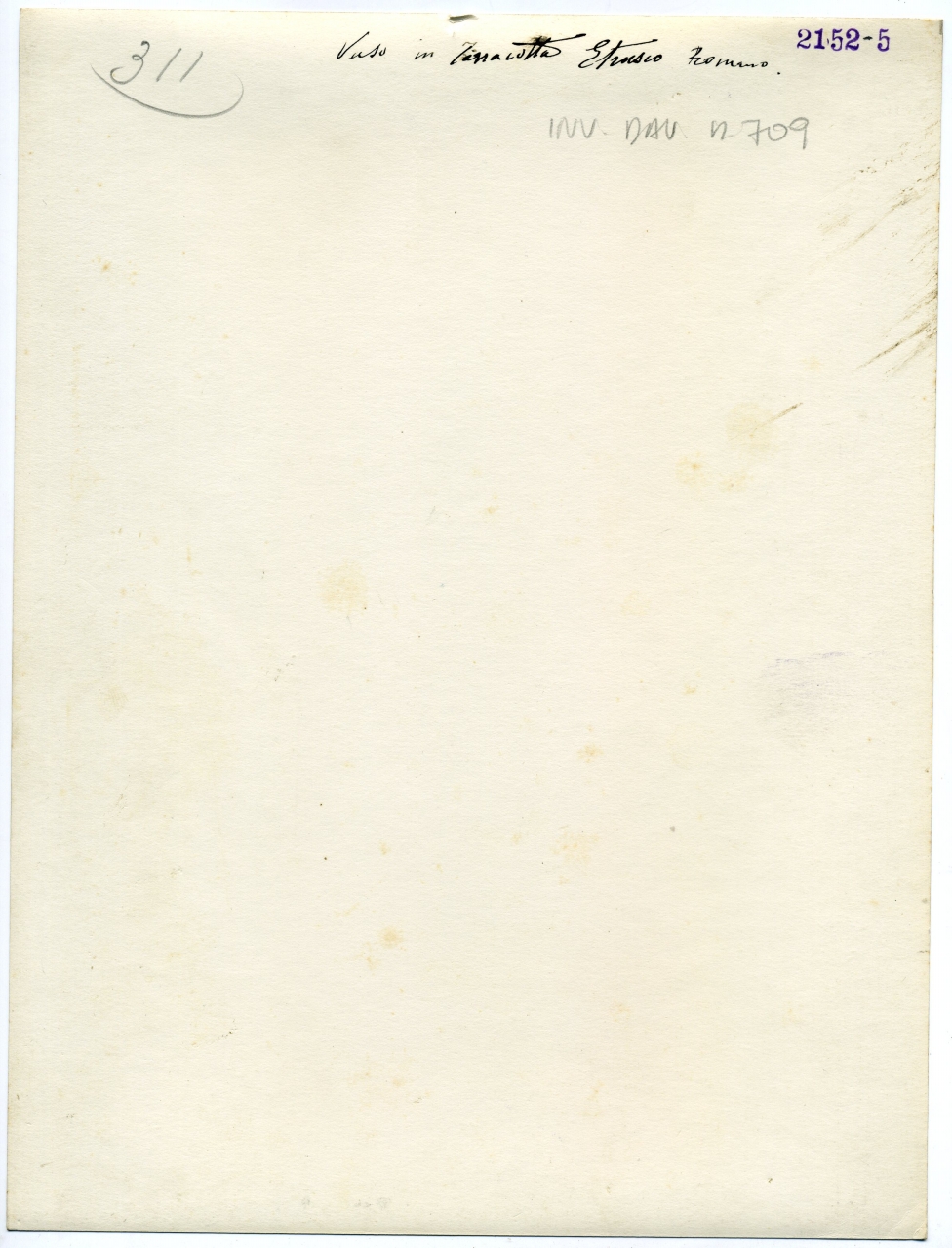 - ISCRIZIONI Sul supporto primario: verso: in alto - Vaso in terracotta Etrusco Romano - a matita -