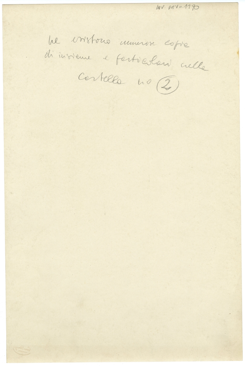 - ISCRIZIONI Sul supporto primario: verso: in alto - ne esistono numerose copie di insieme e particolare nella cartella n° 2 - a matita -