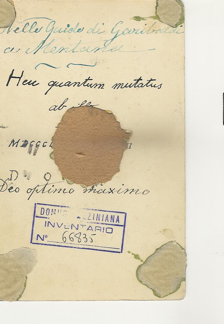 - ISCRIZIONI sul supporto secondario: verso: al centro - Heu quantum mutatus/ ab illo/ MDCCCL [...]/ Deo optimo maximo - a penna - latino