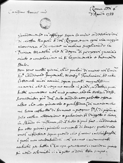 R. Smith. Lettera a Matteo Egizio - 7 febbraio 1733
