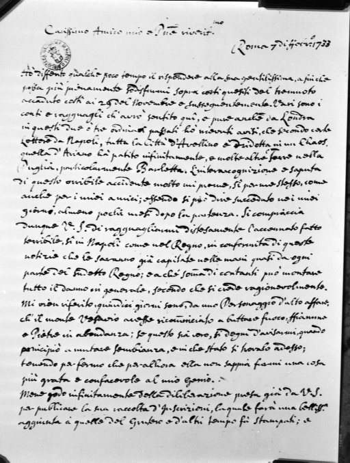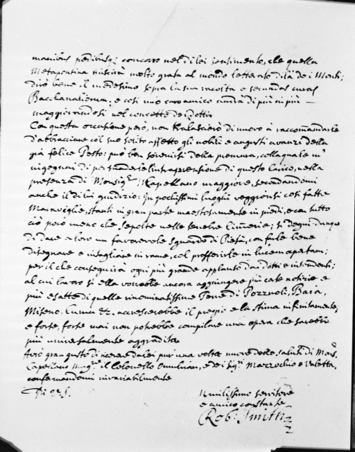 R. Smith. Lettera a Matteo Egizio - 4 aprile 1733