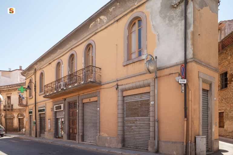 palazzina signorile di rilievo per le funzioni di farmacia del paese, caratterizzata dalla forma triangolare su lotto isolato che le ha conferito due prospetti d'angolo, di cui il principale a E, in direzione della piazza principale, è caratterizzato da un balcone semicircolare e una portafinestra con frontone a base spezzata al cui centro è ospitato una sproporzionata chiave di volta. L'edificio è sviluppato su due livelli fuori terra a N, con un fronte di circa 25 metri, un'altezza di 7 metri e copertura piana praticabile larga 5 metri. Il corpo S è invece a tre livelli, per 10 metri circa d'altezza, largo 5 metri con copertura a padiglione. Nell'asse centrale sul lato N al piano terra, si trova il portale d'accesso al piano nobile. Questo, come le altre aperture al piano terra, sono grandi elementi rettangolari con ampie cornici convesse e listate. Le aperture al piano primo sono invece ad arco a tutto sesto e affacciano al centro su un balcone rettangolare.