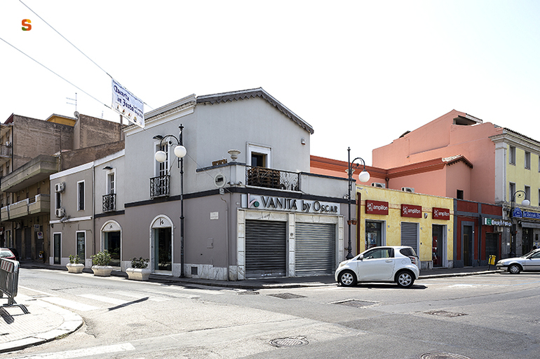 edificio situato all’angolo tra la piazza Azuni e la via Eligio Porcu composto da diversi corpi di fabbrica, è inserito su un lotto rettangolare di circa 22 per 20 metri, è sviluppato su due livelli fuori terra e realizzato con muratura portante in #ladiri# e tetto in capriate di legno di ginepro e canne, la copertura è in coppi. I prospetti sono intonacati e privi di decorazioni di rilievo, ad eccezione delle ringhiere in ferro battuto dei balconi e la cornice lignea che segue l’andamento a capanna del tetto. Le aperture al piano terra sono completamente in contrasto con le originali, per le esigenze dell’attività commerciale, mentre quelle del piano primo sono regolari e gli infissi sono in legno. All’interno i soffitti sono affrescati, ma per lo più coperti da controsoffitti.