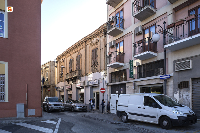 palazzetto su due livelli a pianta rettangolare di circa 16 per 6 metri, posto in posizione d'angolo, avente corte retrostante a cui si accede tramite ingresso sulla via laterale. Il prospetto principale è intonacato tripartito da quattro paraste scanalate in mattoni laterizi a vista, sulle quali si poggia il cornicione di coronamento modanato in mattoni laterizi a vista. La parte centrale è riquadrata da cornice in laterizi, ospita due aperture ad arco a tutto sesto in laterizio e un balcone aggettante poggiato su mensole sagomate e modanate, avente balaustra con elementi prefabbricati. Le aperture laterali sono rettangolari con cornice in laterizi, balaustra in calcestruzzo e sormontate da timpano triangolare spezzato in laterizio. Le aperture del piano terra sono modificate. L'edificio ha basamento in pietrame, murature in ladiri intonacate e rinforzate da mattoni laterizi o conci in calcare nelle parti speciali. La copertura è a padiglione e il tetto a tegole.