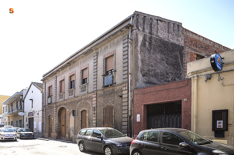 palazzo novecentesco su due livelli di circa 15 per 6 metri, avente corte retrostante. Il fabbricato principale a pianta rettangolare presenta un prospetto tripartito da 4 lesene bugnate, interrotte dalla fascia marcapiano modanata costituita da elementi decorati e dal cornicione di coronamento, costituito da un semplice aggetto, privato della fascia. Al piano terra nella parte centrale sinistra si trova il portale carraio ad arco ribassato cui corrisponde a destra un arco cieco con ingresso ad arco a sesto ribassato. Al primo piano le aperture sono rettangolari con cornice squadrata e con architrave in mattoni laterizi. Le tre centrali hanno balaustra traforata. Tutti gli stipiti, le ghiere degli archi, le lesene e le fasce marcapiano sono decorati a motivi floreali e geometrici. L'edificio ha basamento in pietrame, murature in ladiri intonacate e rinforzate da mattoni laterizi o conci in calcare nelle parti speciali. La copertura è a falda unica e il tetto a tegole.