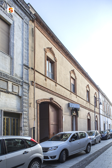palazzo novecentesco su due livelli a pianta rettangolare di circa 16 per 7 metri avente corte retrostante. Il prospetto principale presenta uno zoccolo in rilievo, quattro aperture per piano, ad arco a sesto ribassato aventi stipiti e ghiere decorate e sormontate da festoni floreali in laterizio. L'apparato decorativo tardo liberty è evidente anche nella fascia marcapiano e nella fascia superiore, decorate con motivi ornamentali geometrici; la cornice di coronamento è aggettante e decorata con ovuli e motivi floreali. Il portale di accesso alla corte è posto in posizione asimmetrica a sinistra e presenta un arco a sesto ribassato. L'edificio ha basamento in pietrame, murature in ladiri intonacate, rinforzate da mattoni laterizi o conci in calcare o elementi prefabbricati in calcestruzzo nelle parti speciali. La copertura è a falde e il tetto a tegole.