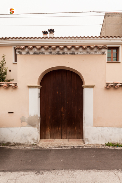ubicato nel centro di San Gavino Monreale, il bene è uno dei portali storici del paese. Si tratta di un piccolo portale pedonale ligneo ad anta singola a protezione di un'apertura ad arco policentrico. L'arco come l'intero paramento murario di confine in cui è inserito è intonacato e tinteggiato di un rosa carne. I piedritti, evidenziati dalla presenza dei capitelli all'imposta dell'arco, hanno una finitura ad intonaco con colorazione bianca. La struttura, più alta del muro di cinta circostante è coperta da un tetto in coppi a falda singola. Il portale ha una struttura in doghe verticali accostate, montate su un telaio interno e presenta superfici trattate. Esso si affaccia direttamente su strada per un'altezza di 2,54 metri per 1,58 di larghezza.