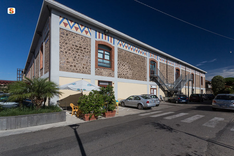 struttura portante costituita da telaio in cemento armato e muri di tamponamento rivestiti con placcaggio a opus incertum in conci di basalto irregolari separati da larghi giunti di malta. Il telaio di pilastri e cordoli in cemento armato è denunciato all'esterno e sottende le grandi finestre a centina ribassata, dotate di mostre realizzate in mattoni rossi di laterizio. Elementi decorativi costituiti da fascia a motivi triangolari policromi lungo il coronamento e a strisce bicrome verticali in corrispondenza della finestre. La copertura è in parte piana e in parte con tetto a doppia falda e struttura portante in legno. Gli interni sono caratterizzati da un doppio volume diviso da un soppalco che collegaa le varie zone della fabbrica.