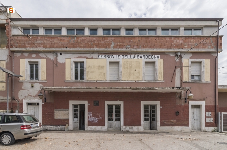 l’edificio, una Stazione Ferroviaria risalente alla fine del XIX sec, rappresenta un tipico esempio dell’architettura del periodo. Composto da due blocchi, si sviluppa su tre piani fuori terra, con un’altezza complessiva di circa 12 m e risulta compreso in un rettangolo di circa 27 per 7 m. La facciata è tripartita con la parte centrale leggermente avanzata. Le aperture sono squadrate con mostre in cemento e disposte simmetricamente rispetto all’asse centrale. In sommità si trova l’iscrizione FERROVIE DELLA SARDEGNA e una pensilina in cemento armato copre l’ingresso. La porzione del piano terra è rivestita in piccole piastrelle mentre la restante parte dei prospetti è intonacata e tinteggiata. Gli infissi sono in legno. Diverse lapidi inserite nei prospetti frontale e posteriore ricordano il passaggio dello scrittore D.H. Lawrence nel 1921.