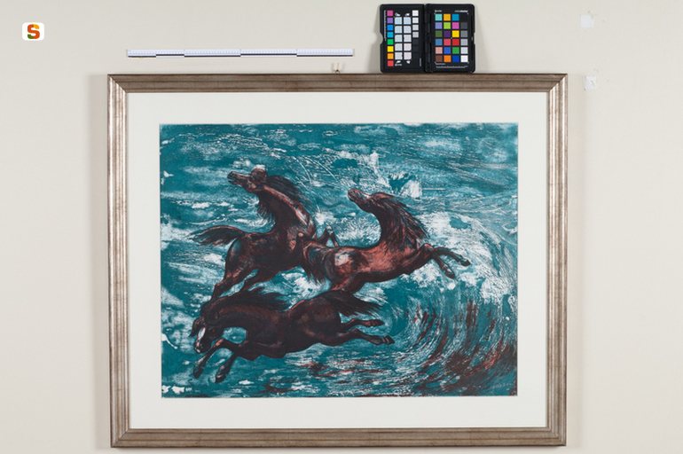 Sospinti dai flutti. cavalli in un paesaggio marino ideale
