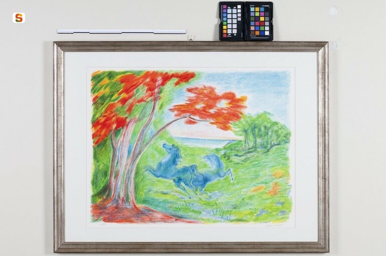 I cavalli del cielo. cavalli in un paesaggio marino ideale