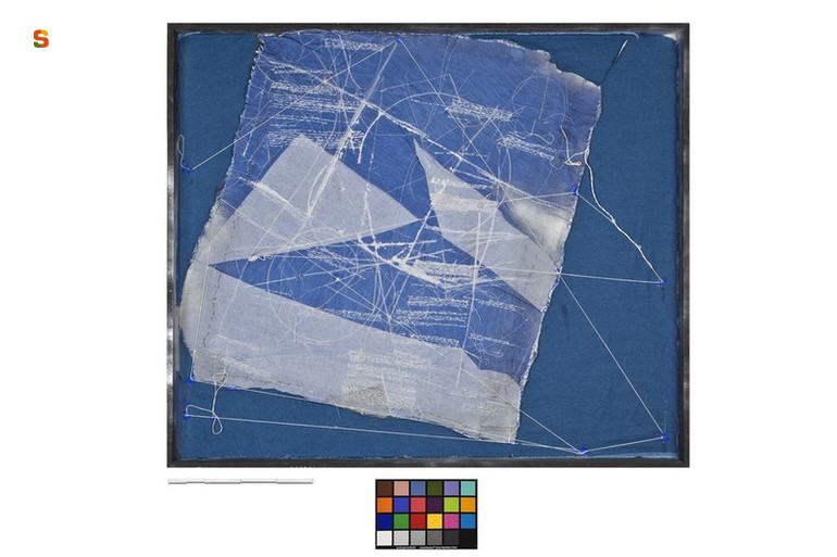 tavola// tela/ incollaggio// lino// filo di cotone/ ricamo