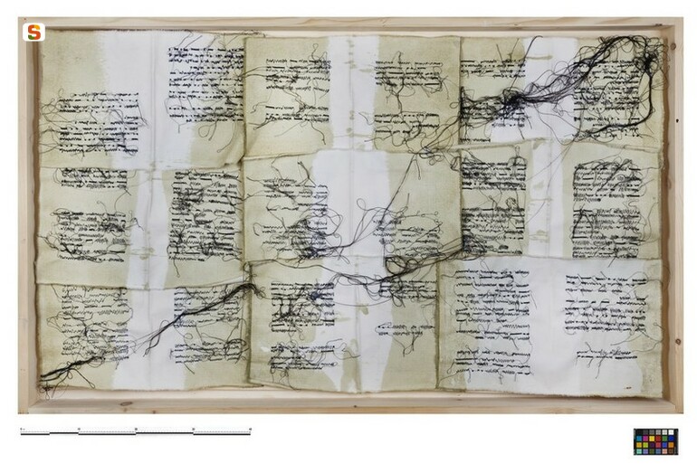 tavola// tela/ incollaggio// filo di cotone/ ricamo su tela