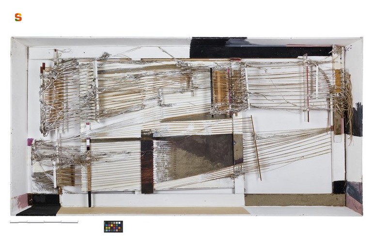 legno/ pittura a olio// tela/ incollaggio/ pittura a olio// spago