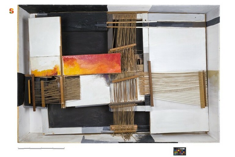 legno/ pittura a olio// tela/ pittura a olio// spago