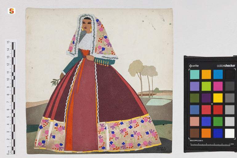 Donna di Osilo. ritratto di figura femminile in costume popolare sardo