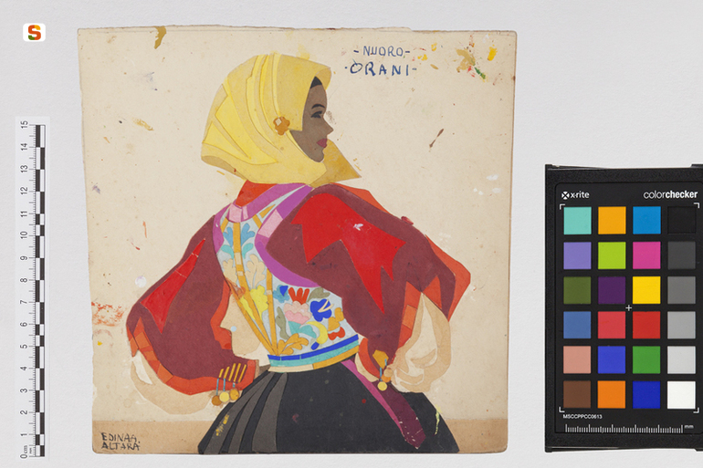 Donna di Orani. ritratto di figura femminile in costume popolare sardo