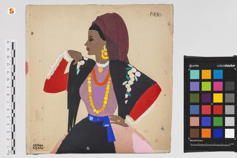 Donna di Pirri. ritratto di figura femminile in costume popolare sardo