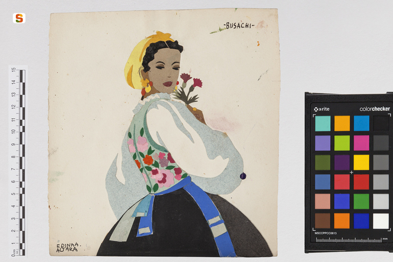 Donna di Busachi. ritratto di figura femminile in costume popolare sardo
