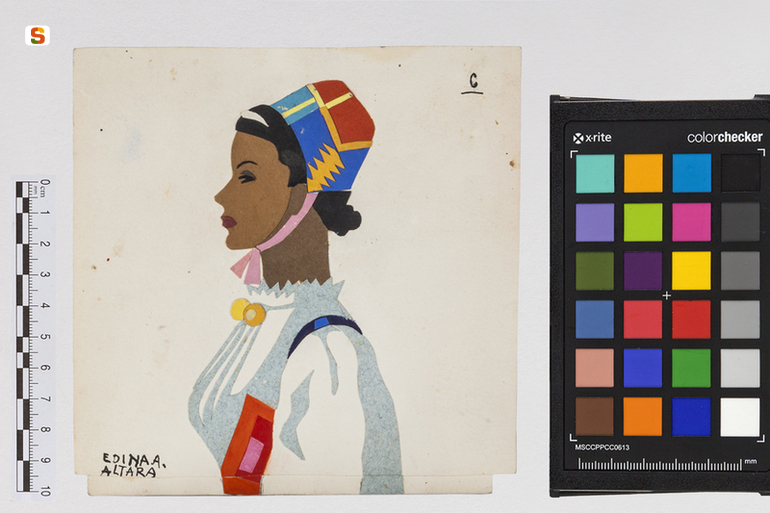 Donna di Desulo. ritratto di figura femminile in costume popolare sardo