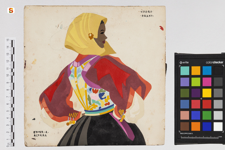 Donna di Orani. ritratto di figura femminile in costume popolare sardo