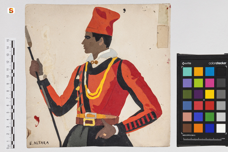 Uomo miliziano. ritratto di figura maschile in costume popolare sardo
