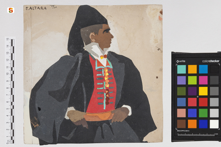 Uomo di Pula. ritratto di figura maschile in costume popolare sardo
