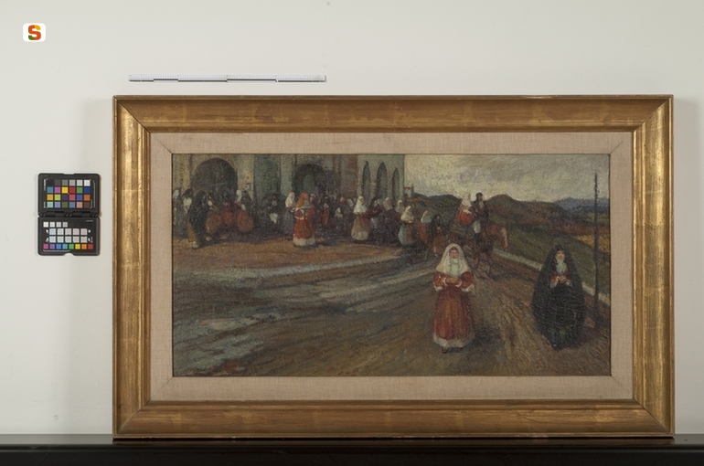 L'uscita dalla messa. figure maschili e femminili nel sagrato della chiesa del Rosario a Osilo