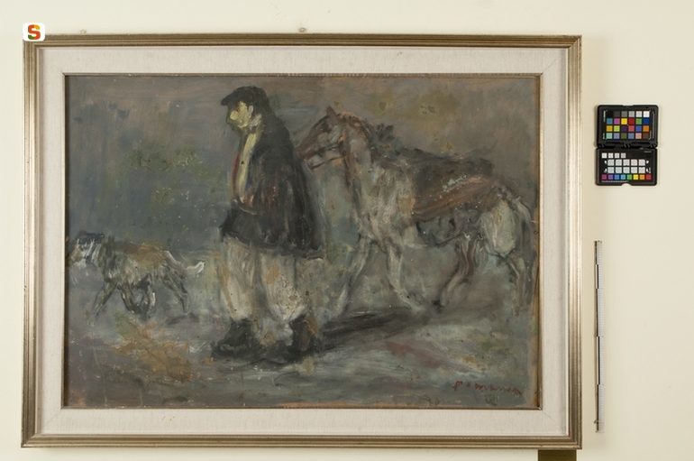 figura maschile con cavallo e cane