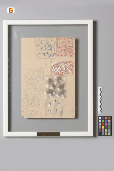 carta per ciclostile/ grafite/ pastello a cera/ pittura a tempera