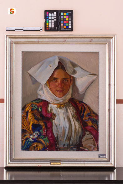 Donna di Atzara. ritratto di figura femminile in costume