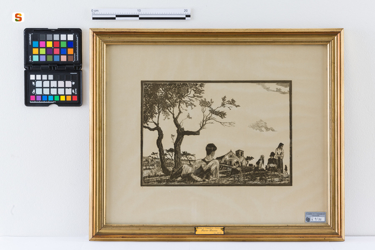I vespri di S. Elia. scena campestre con chiesa e figure in costume popolare sardo