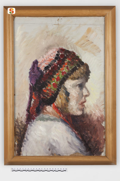 Testa di fanciulla. ritratto di figura femminile in costume