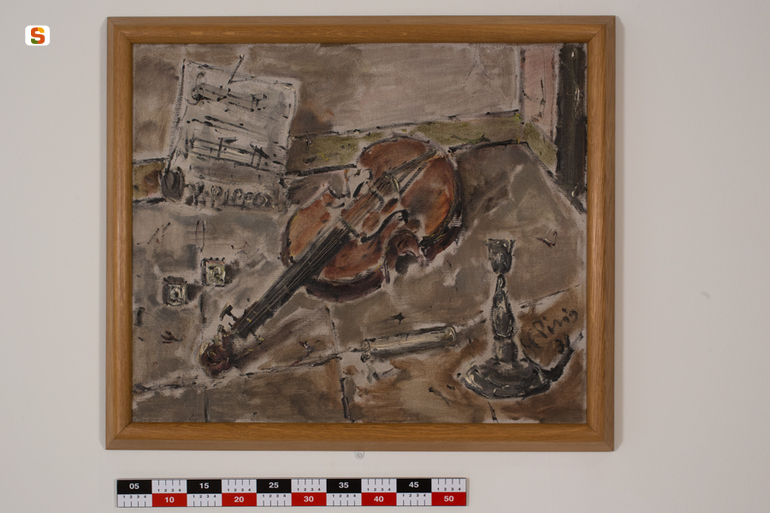 Natura morta con candeliere e violino. natura morta con strumenti musicali