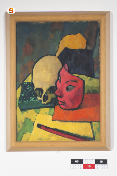 Natura morta con maschera rossa. natura morta