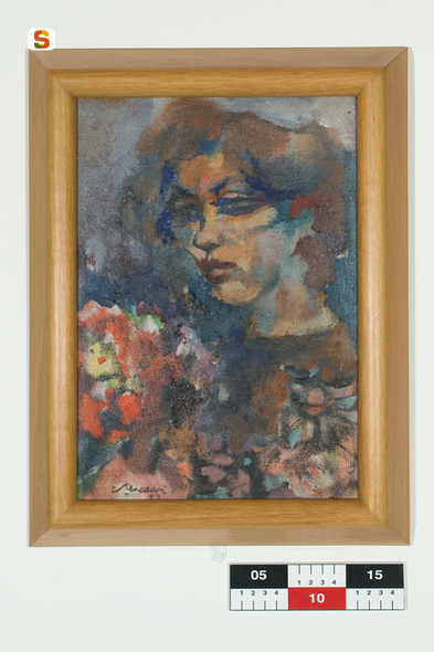 Ritratto femminile con fiori. ritratto di figura anonima femminile
