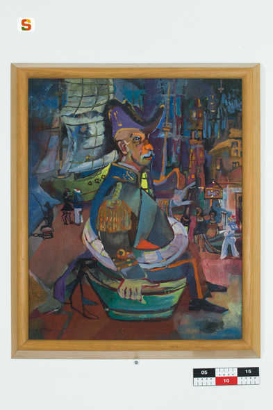 Ammiraglio seduto su una tinozza. paesaggio con figura