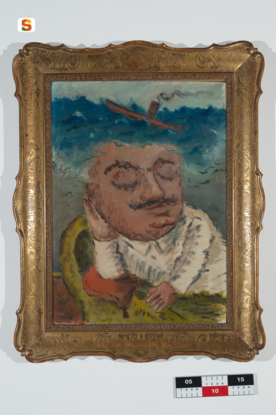 Il sogno del vecchio capitano. paesaggio ideale con figura seduta dormiente