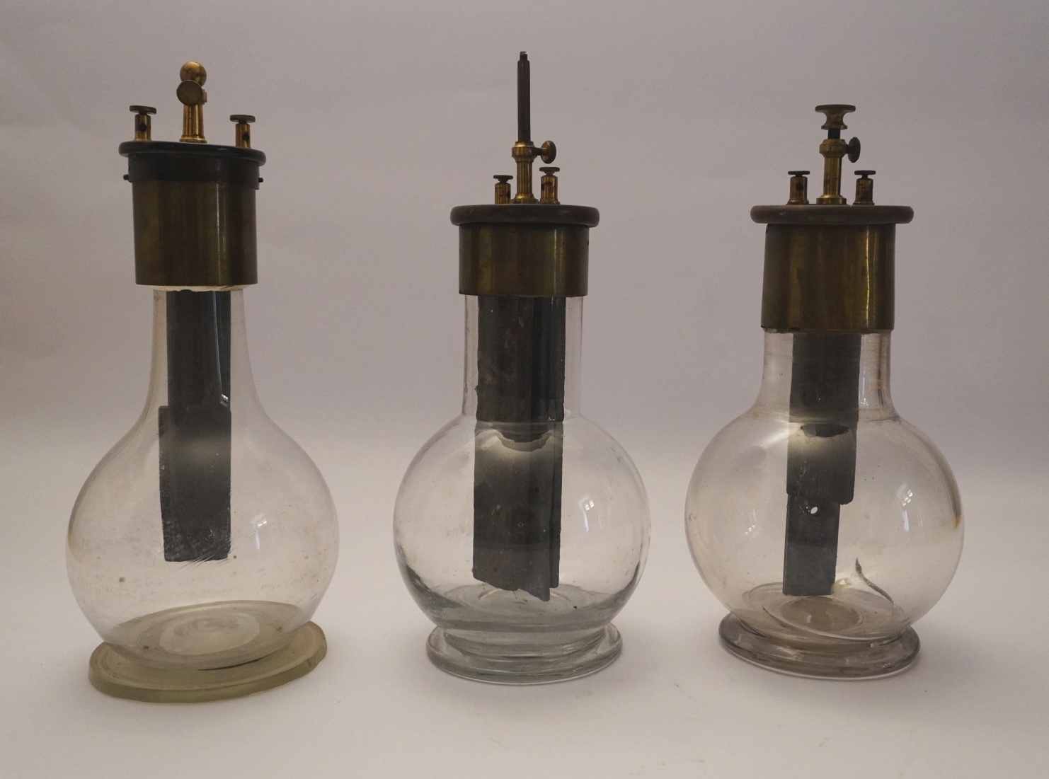 Formata da un matraccio di vetro chiuso da una ghiera d'ottone con coperchio d'ebanite. A questo sono fissate due lastre di carbone che penetrano nel matraccio e sono collegate ad un serrafili