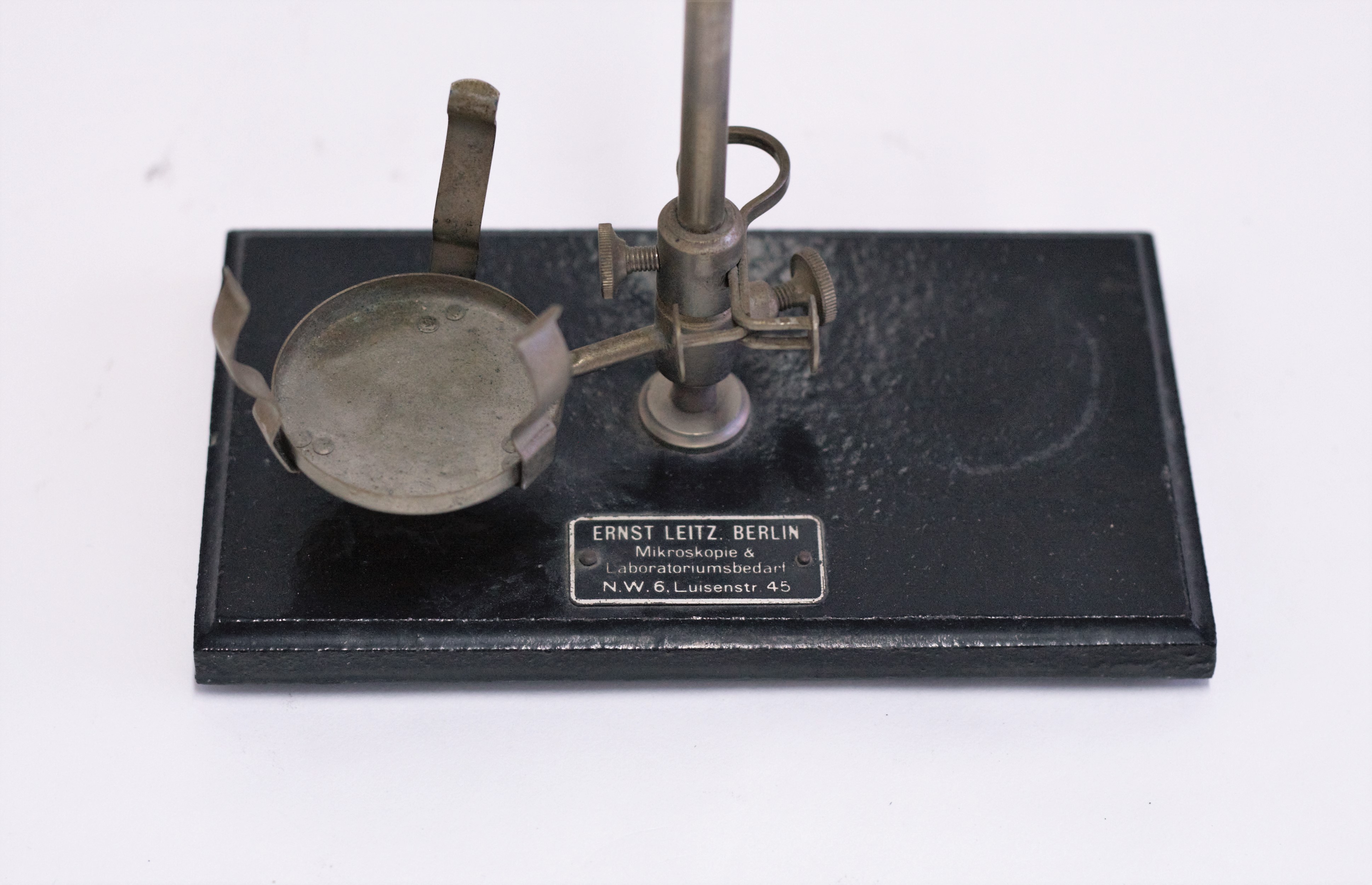 - NOTIZIE STORICO CRITICHE Tenendo conto della casa costruttrice, specializzata nella produzione di lenti e microscopi si può dedurre che il sostegno in esame fosse utilizzato per sorreggere un sistema di lenti ed altri strumenti idonei all'attività di analisi in laboratorio