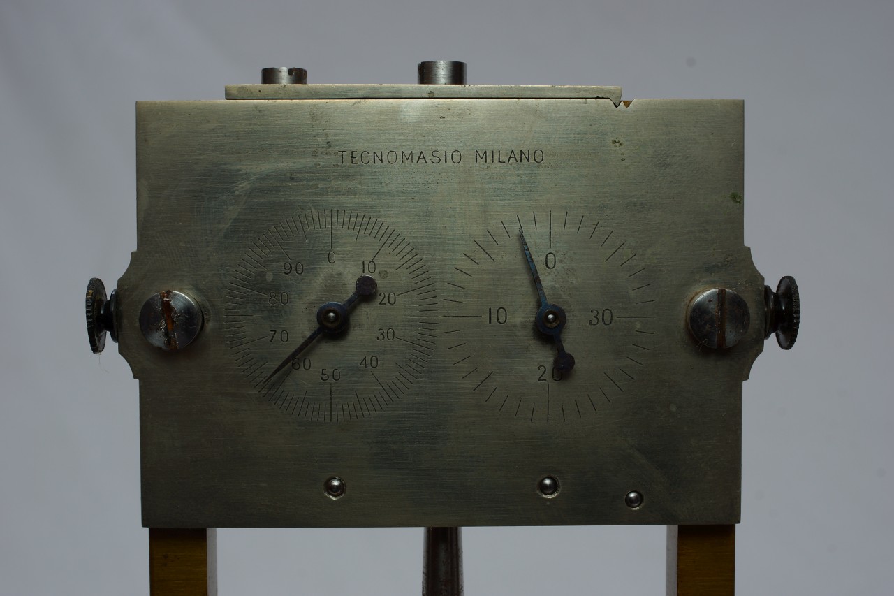 - ISCRIZIONI sul pannello con i contagiri - TECNOMASIO MILANO - ditta costruttrice Tecnomasio Italiano - maiuscolo - a incisione - italiano