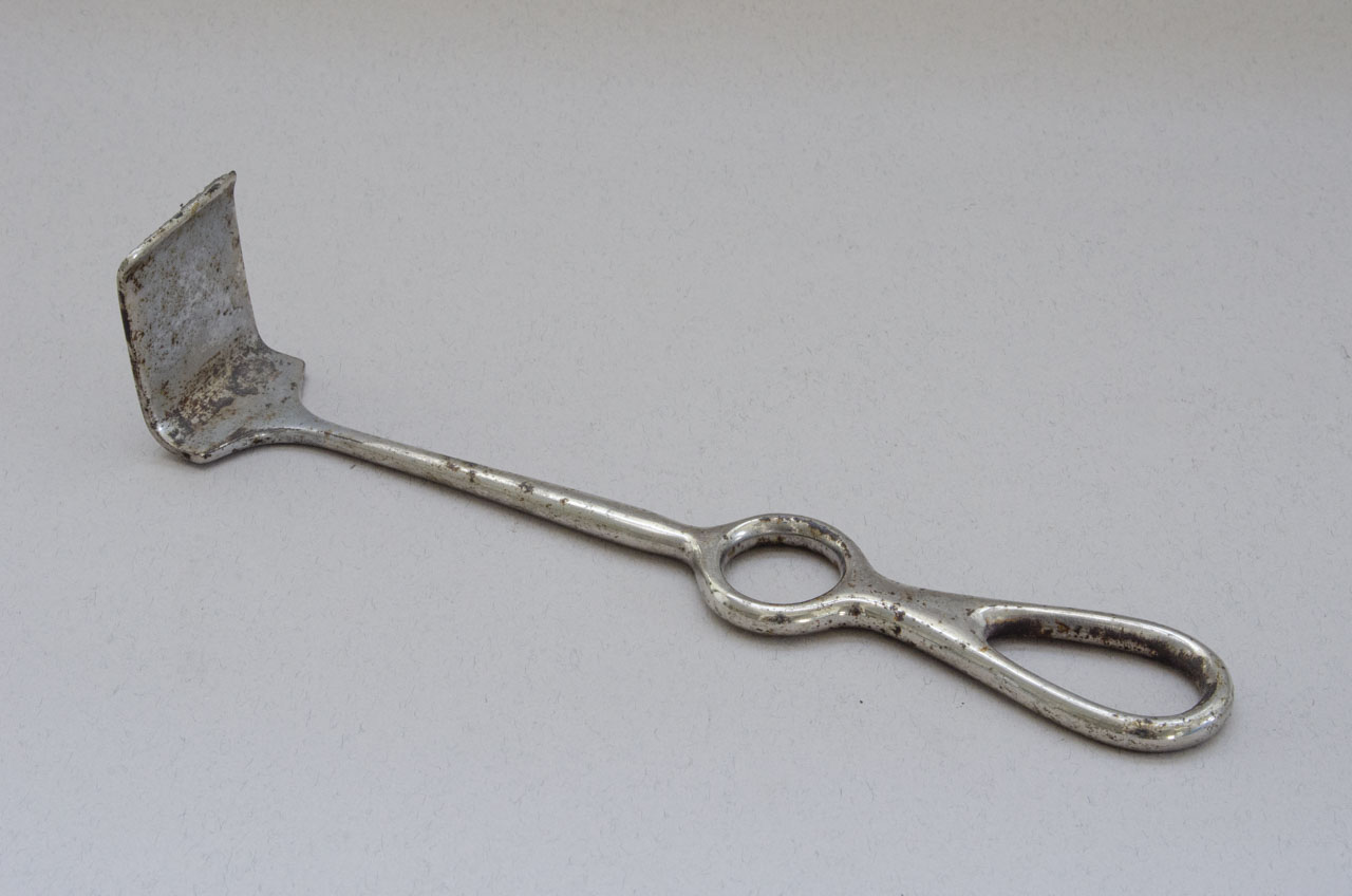 La parte distale dello strumento è costituita da una lamina unita mediante un segmento a un anello e all'impugnatura di forma ovulare