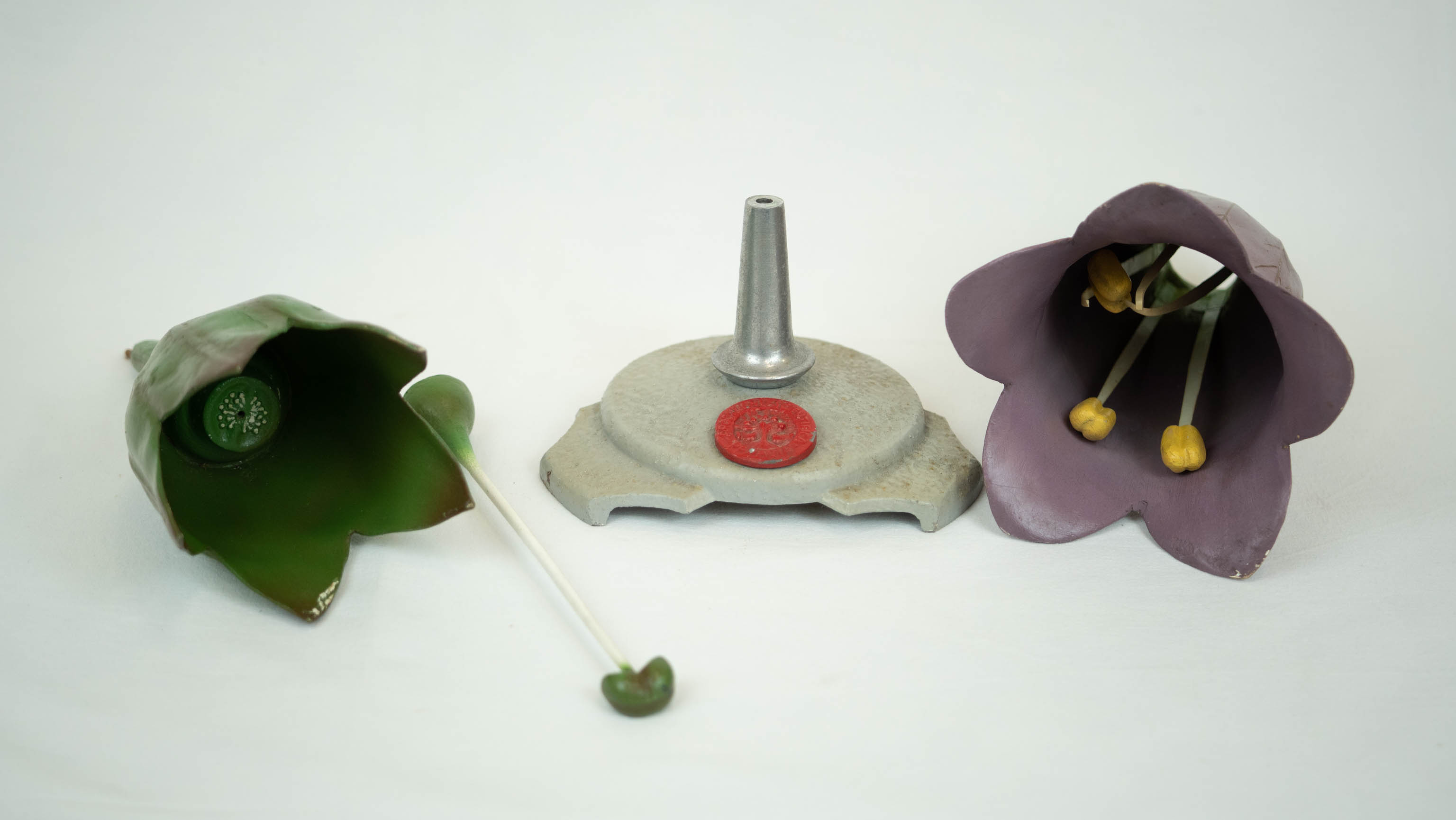 il modello policromo tridimensionale della Belladonna è scomponibile in tre elementi: calice, corolla e stigma. Si inserisce alla base di forma triangolare mediante un supporto metallico. La belladonna è una pianta medicinale della famiglia delle Solanacee