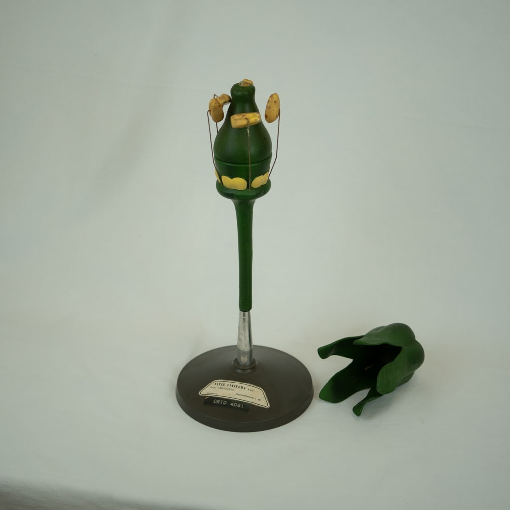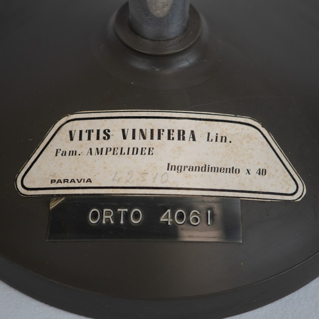 rispetto alle dimensioni naturali il modello tridimensionale della vite è ingrandito 40 volte. È scomponibile in due parti: una rappresenta il calice a cappuccio, l’altra rappresenta l’insieme dell’androceo e del gineceo, quest’ultimo sezionato trasversalmente secondo un piano orizzontale, per mostrare la struttura interna della bacca. Si inserisce alla base conoidea mediante un supporto in alluminio