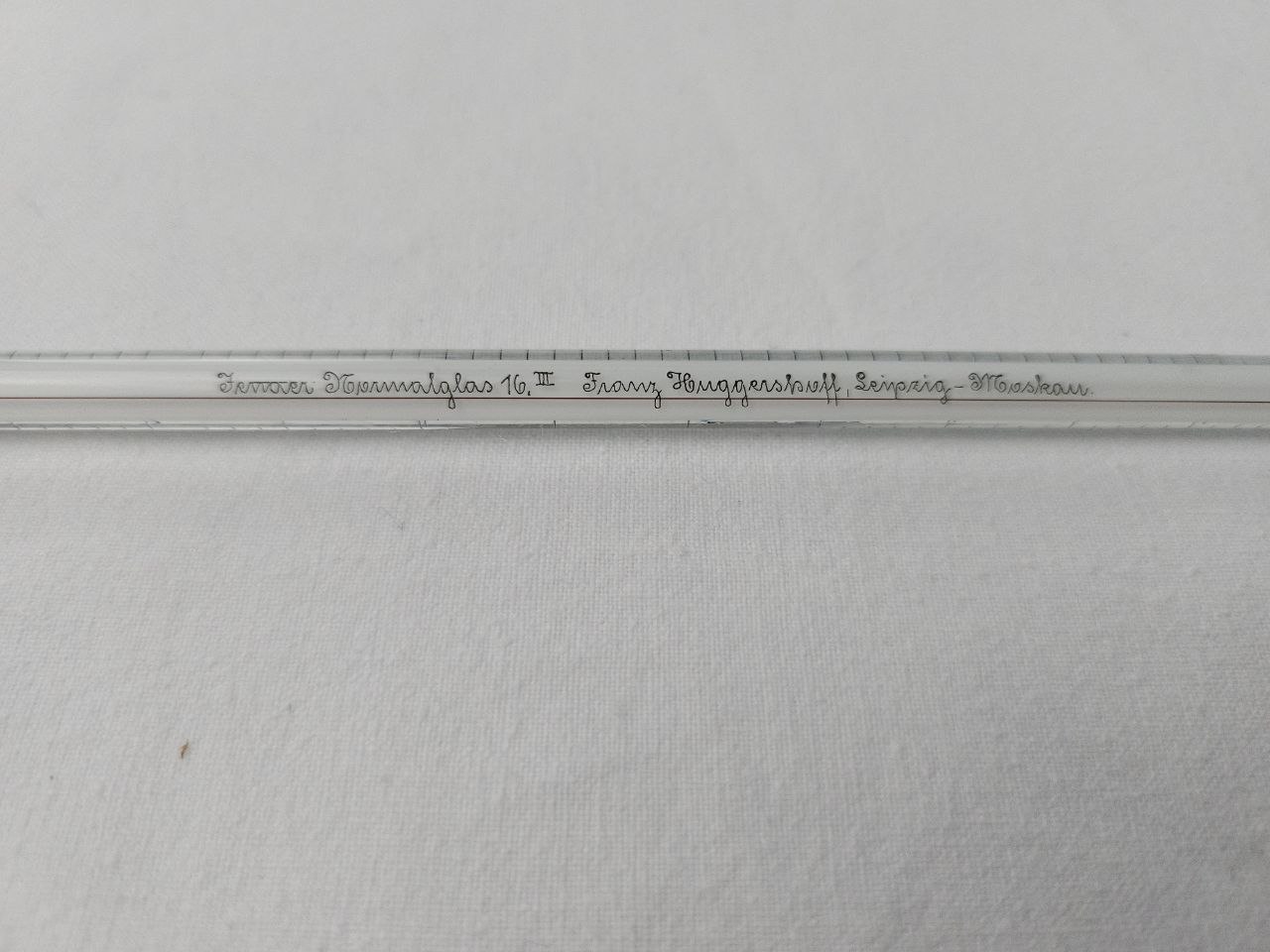 il termometro contiene al suo interno mercurio liquido, che si dilata o si contrae in base alle variazioni di temperatura. Lungo il tubo di vetro è stampata una scala centigrada (Celsius, °C), che consente la lettura della temperatura