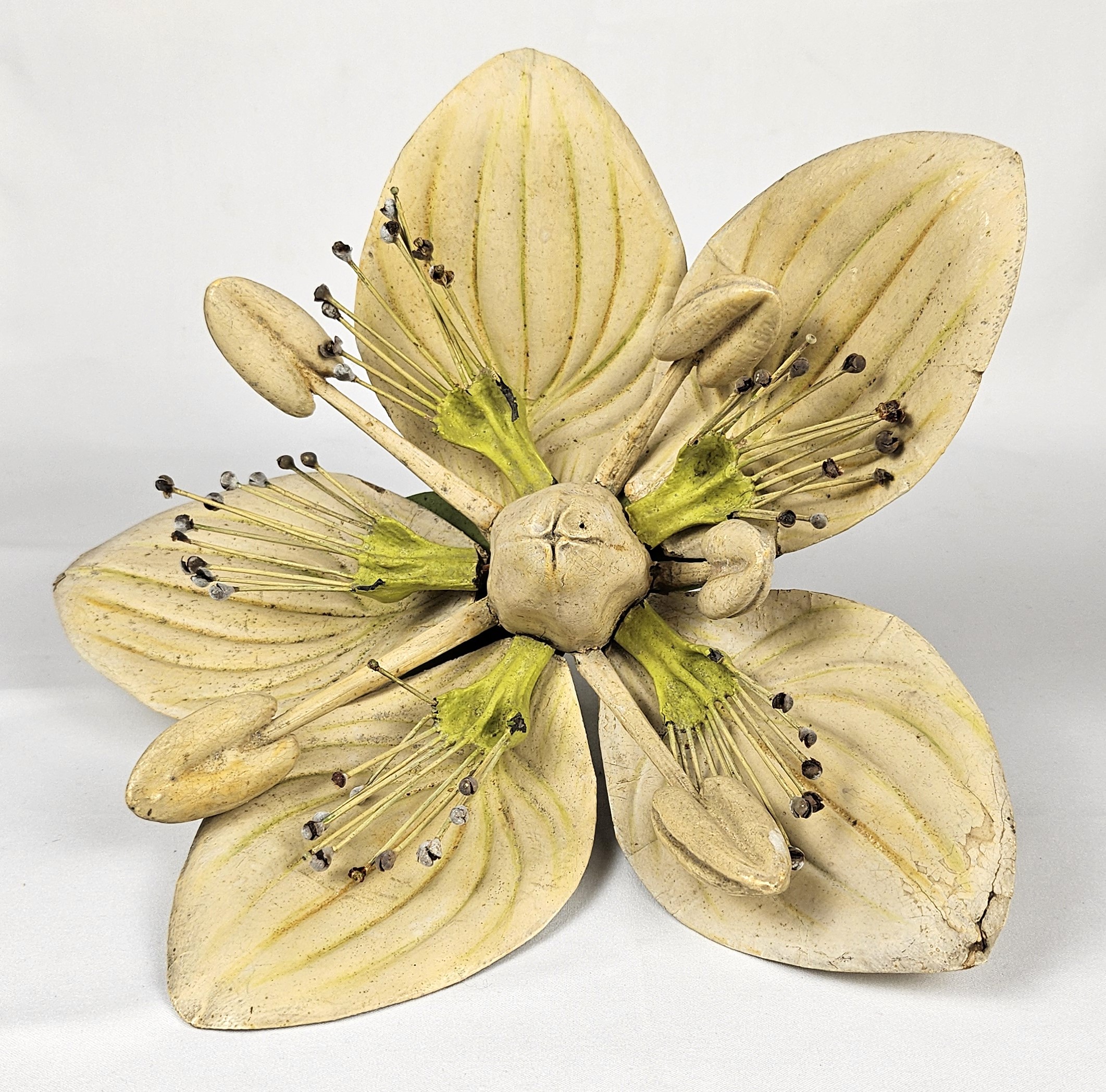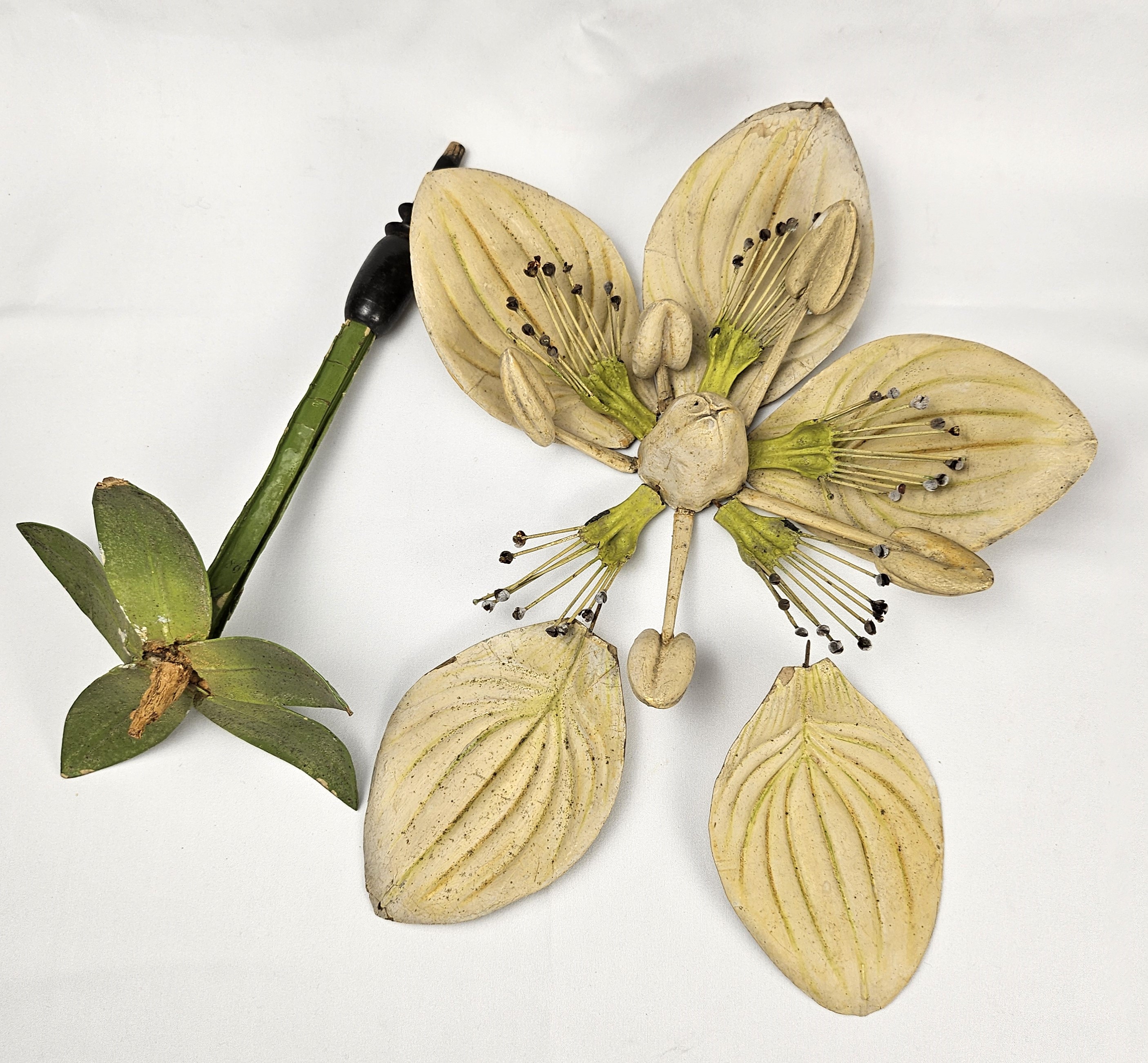 il modello didattico è una riproduzione fedele e ingrandita di Parnassia palustris, più comunemente conosciuta come parnassia, della famiglia delle Celastraceae. Il modello del fiore, realizzato in cartapesta e dipinto a mano, è privo della sua consueta base circolare in legno che ne indica il nome scientifico, ma tramite un'analisi tipologica e comparativa con altri modelli esistenti è stato possibile risalire al nome del modello